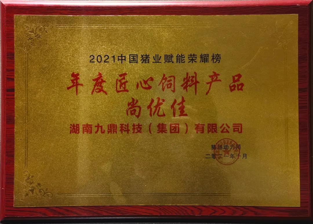 在頒獎(jiǎng)典禮上,集團(tuán)技術(shù)研發(fā)中心總經(jīng)理江書忠榮獲“年度領(lǐng)軍人物”,集團(tuán)教槽料產(chǎn)品“尚優(yōu)佳”榮獲“年度匠心無抗飼料產(chǎn)品獎(jiǎng)”。這是行業(yè)以及社會(huì)各界對(duì)九鼎集團(tuán)研發(fā)實(shí)力以及產(chǎn)品品質(zhì)的高度認(rèn)可及肯定。