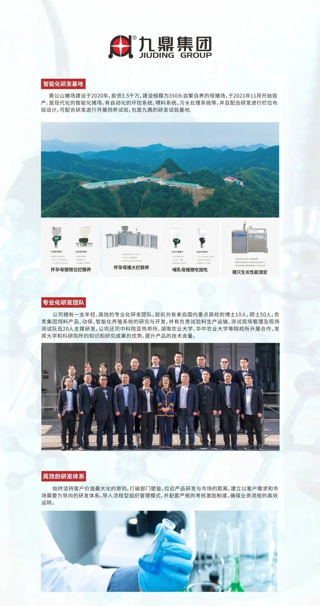 九鼎集團29年來專業(yè)研發(fā)生產(chǎn)豬料,在產(chǎn)品創(chuàng)新和實踐上一直走在行業(yè)前列,未來九鼎也將繼續(xù)以客戶為中心,為廣大養(yǎng)殖企業(yè)提供優(yōu)質(zhì)的飼料產(chǎn)品及服務(wù),助力生豬養(yǎng)殖業(yè)走向高質(zhì)高效的發(fā)展道路!