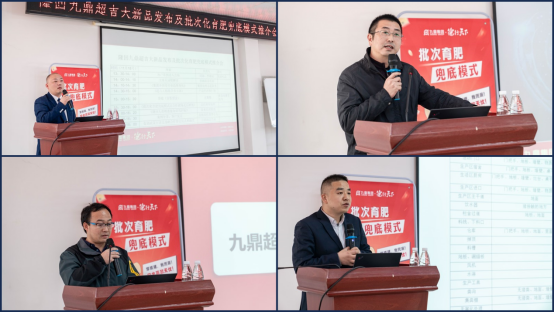 ▲【圖①】隆回九鼎營銷副總肖永主持會議;【圖②】集團(tuán)宣傳部總監(jiān)陳冬講解了行業(yè)趨勢以及集團(tuán)六大核心優(yōu)勢助力養(yǎng)殖;【圖③】集團(tuán)產(chǎn)品經(jīng)理蔡仁賢分享超吉大高價值產(chǎn)品試驗數(shù)據(jù),以及展示偏食試驗視頻解讀;【圖④】隆回九鼎技術(shù)服務(wù)經(jīng)理蔡鴻進(jìn)行了當(dāng)前疫情防控,生物安全知識培訓(xùn)。
