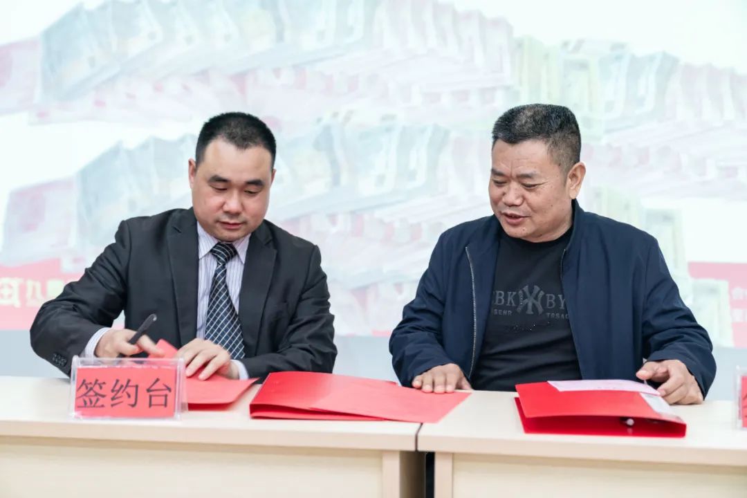 ▲隆回九鼎總經(jīng)理羅海輝與客戶現(xiàn)場進(jìn)行批次育肥兜底簽約儀式