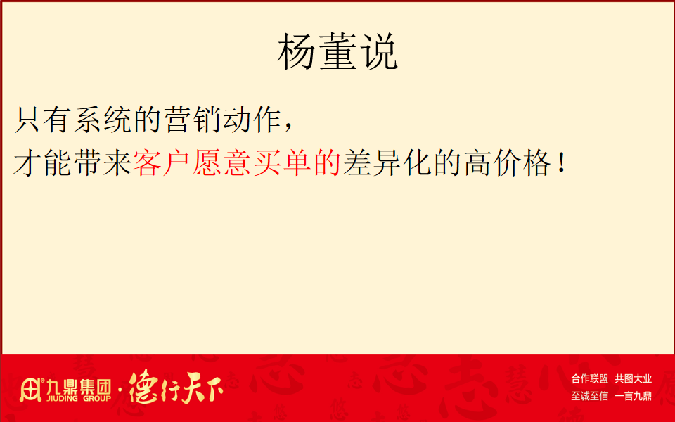 集團(tuán)副總裁尚軍先生發(fā)表熱情洋溢的致辭,分享了楊林董事長(zhǎng)關(guān)于系統(tǒng)性營(yíng)銷的重要論述:“只有系統(tǒng)的營(yíng)銷動(dòng)作,才能帶來(lái)客戶愿意買單的差異化的高價(jià)格!”同時(shí),他也強(qiáng)調(diào)了“定風(fēng)波,基本功,不會(huì)錯(cuò)”的經(jīng)營(yíng)哲學(xué),即在復(fù)雜多變的市場(chǎng)環(huán)境中,企業(yè)要保持穩(wěn)定發(fā)展,必須具備扎實(shí)的基本功。