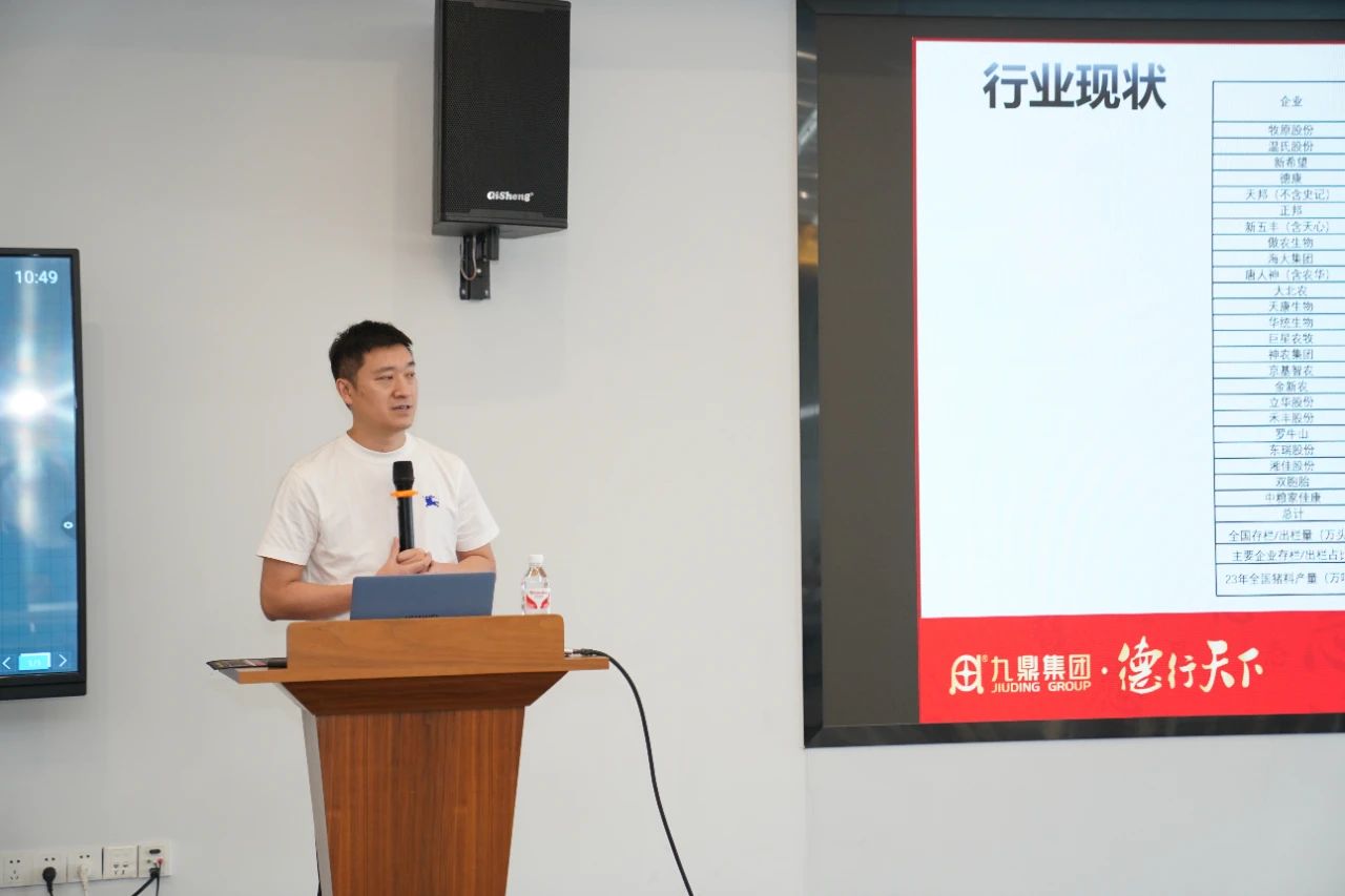 ▲集團產(chǎn)品總監(jiān)吳志鋒介紹了《二次育肥料產(chǎn)品價值》