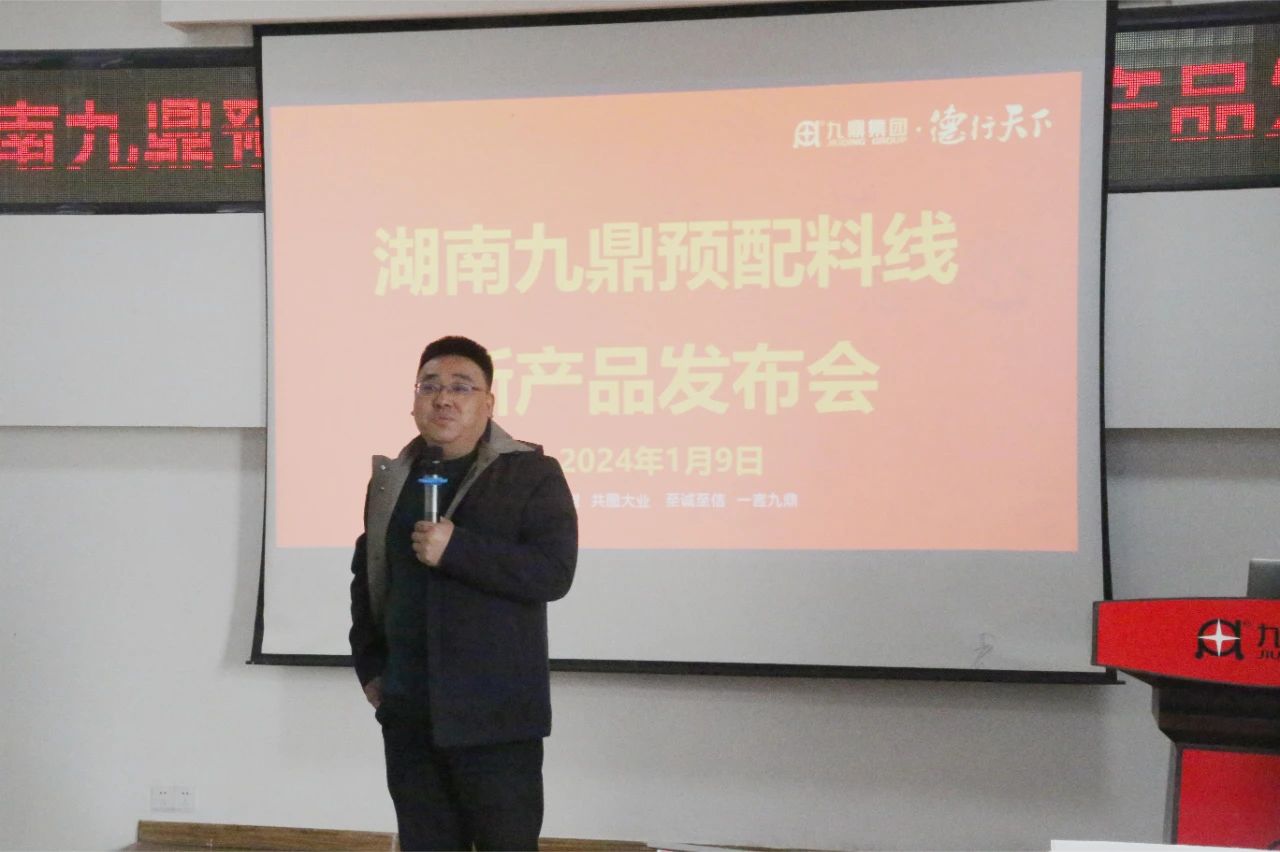2024年1月9日清晨,岳陽新港區(qū)九鼎研究院三樓會(huì)議室熱鬧非凡,一場(chǎng)振奮人心的盛會(huì)拉開了帷幕。預(yù)配料線年會(huì)及新產(chǎn)品發(fā)布會(huì)聚集了各營(yíng)銷公司的精英,座無虛席,見證了預(yù)混料新產(chǎn)品的盛大亮相!